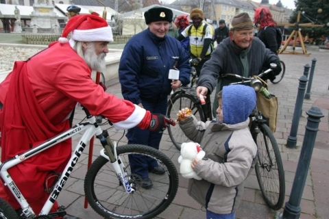 Az iskolák meglátogatása után a kerékpáros Mikulás a krampuszokkal és a rendőrkapitányság munkatársaival együtt járta a várost és minden szembejövő gyereket egy kis ajándékkal lepett meg.