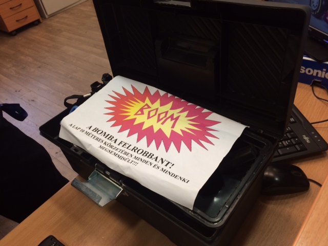 A Budapesti Rendőr-főkapitányság ügyeletére 2015. június 21-én 13 óra 19 perckor érkezett bejelentés, amely szerint a Budapest VI., Nyugati Pályaudvaron az egyik álló vonaton egy szerelőtáskát találtak, amelyben egy lapon "Bumm, a bomba felrobbant!" felirat volt, továbbá abból ketyegést hallottak. A rendőrség munkatársai kiürítették a pályaudvart. A Készenléti Rendőrség tűzszerészei a táska tartalmát megvizsgálták, abban robbanószert vagy robbantásra alkalmas eszközt nem találtak, csak egy elemes ébresztőóra volt benne.