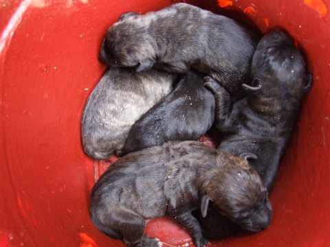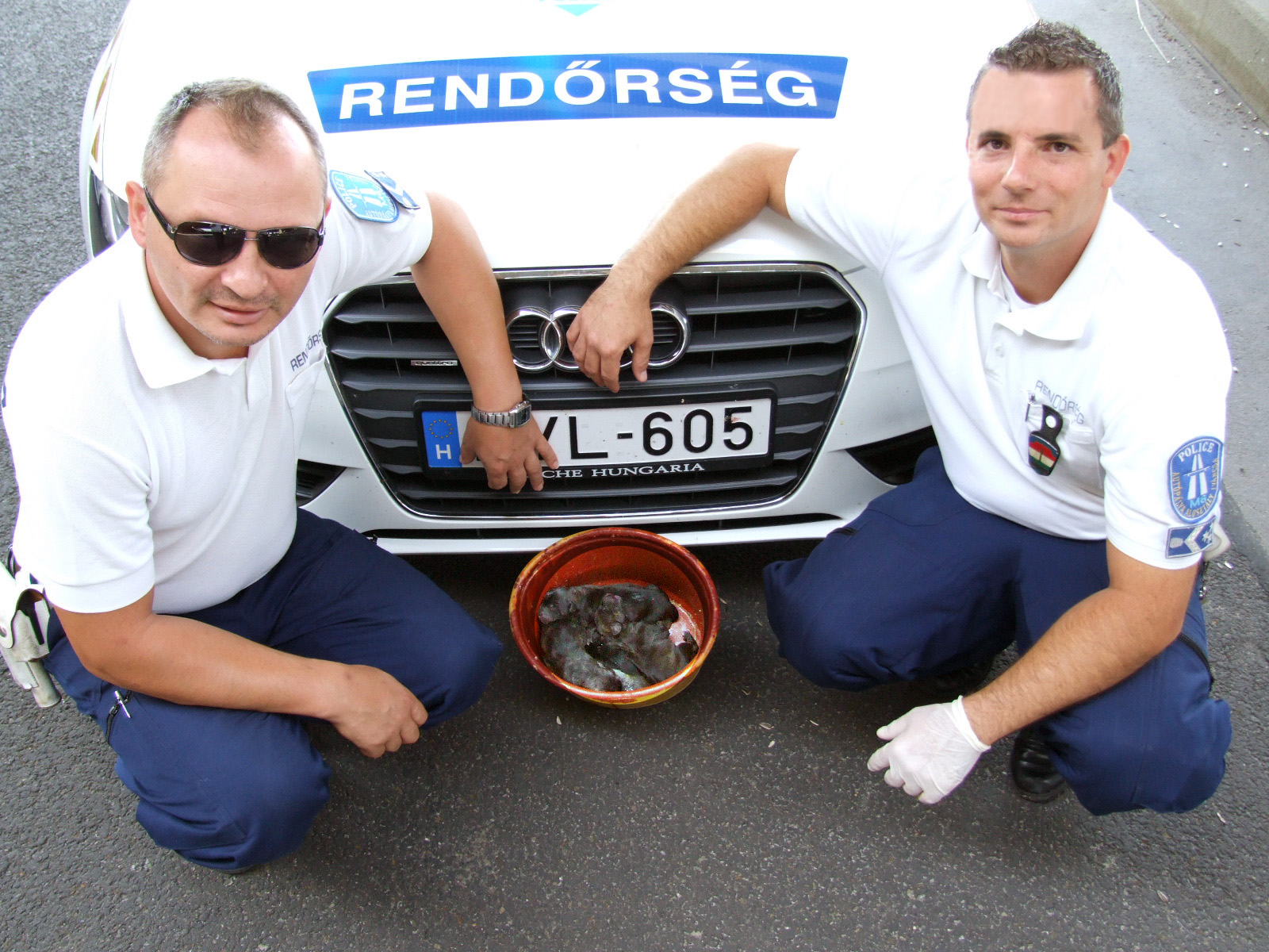 Dunaújváros térségében, az M6-os autópálya rendőrei járőrözésük során egy vízelvezető árokban kiskutyákat találtak.