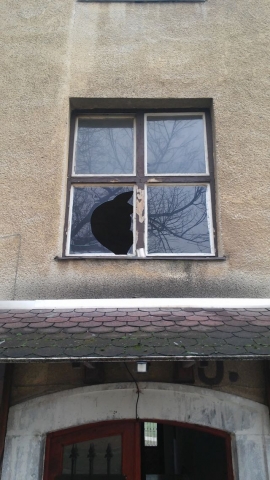 A helyszínre a Nyergesújfalui Rendőrörs beosztottjai vonultak, akik a lépcsőházban kiabálást és üvegcsörömpölést hallottak. A harmadik emelet lépcsőfordulójához érve egy betört ablakot észleltek, illetve a hangoskodó fiatalembert, aki egy lakás bejárati ajtaját többször megrúgta.