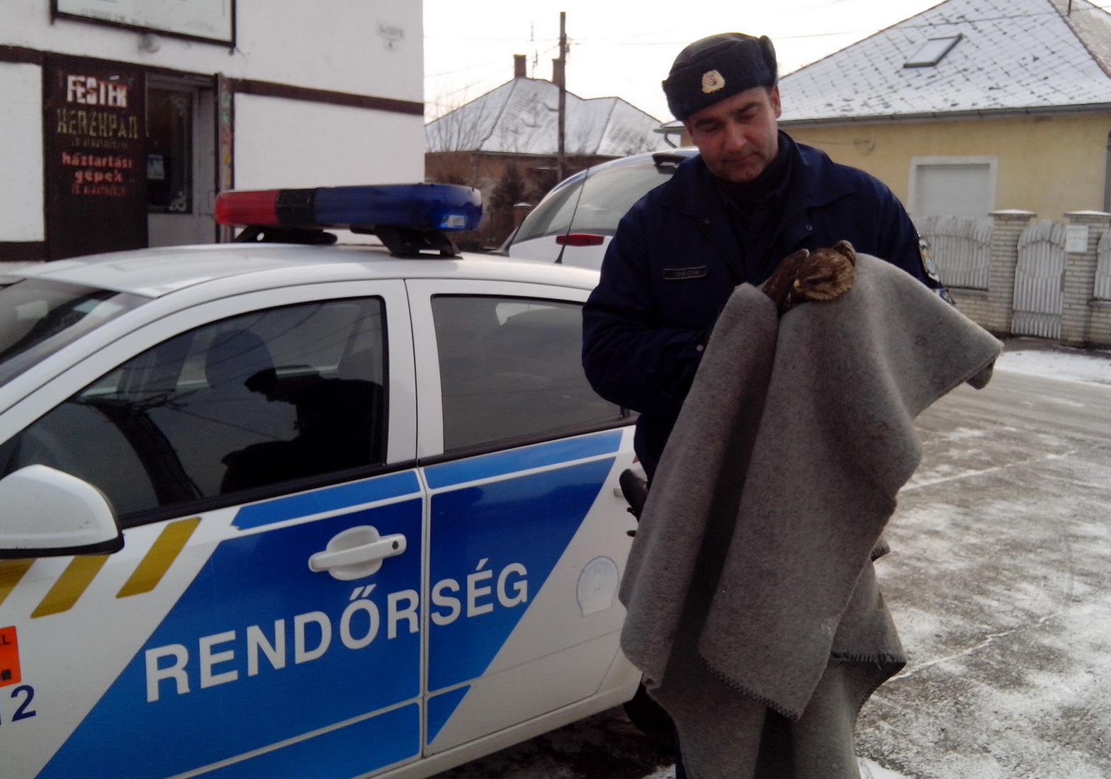 A tiszaburai körzeti megbízott 2017. január 12-én délelőtt Kunmadaras irányába haladt szolgálati gépkocsijával, amikor az úton megpillantott egy vergődő madarat. Lázár István rendőr főtörzszászlós azonnal megállt, kiszállt a járműből, hogy közelebbről megvizsgálhassa a segítségre szoruló állatot. Látta, hogy a fiatal ragadozó madár szárnya sérült, ezért nem tud felszállni. A rendőr pokrócba helyezve berakta a gépkocsiba és elvitte a Kunmadarasi Rendőrősre, ahol intézkedtek a madár Hortobágyi Madárkórházba történő szállításáról.