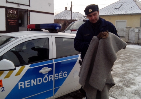 A tiszaburai körzeti megbízott Kunhegyes külterületén, a havas úton egy madarat pillantott meg, amely láthatóan segítségre szorult.