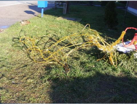 A rendelkezésre álló adatok alapján a gyanúsított 2015. január 3-án 1 óra körüli időben a Polgármesteri Hivatal előtti területen az ünnepek ideje alatt felállított „rénszarvas” fémszerkezetét a földre döntötte. A tettes a házilag készített, kivilágított művet eldeformálta és megtaposta.