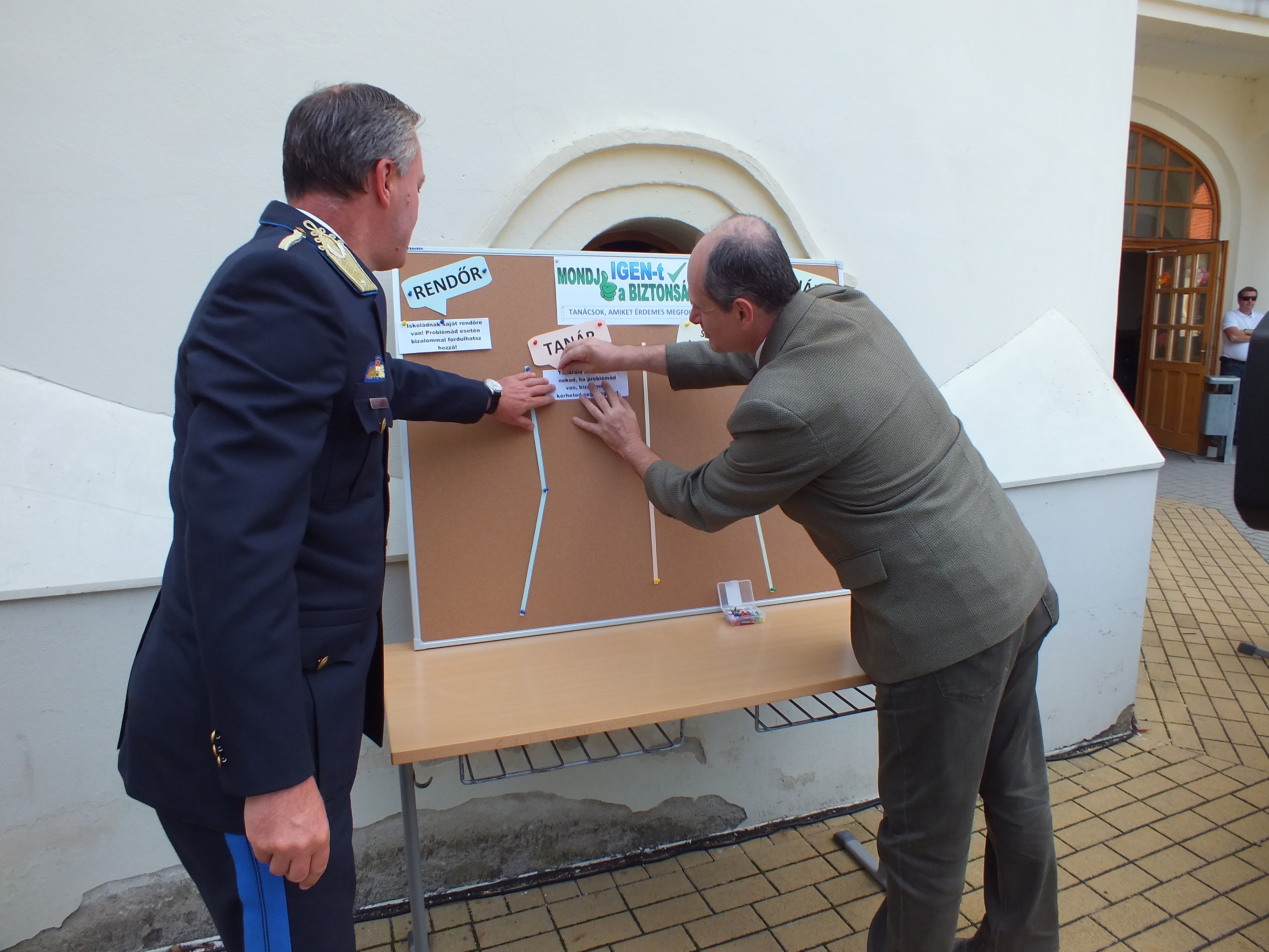 A rendezvény zárásaként a Veszprém Megyei Rendőr-főkapitányság vezetője, dr. Töreki Sándor rendőr dandártábornok átadta az iskola igazgatójának, Venczel Csabának a „Mondj IGEN-t a biztonságra!” feliratú „prevenciós falat”.