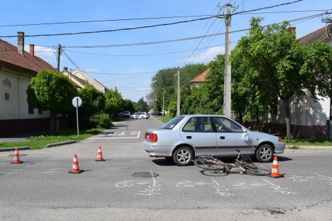 Békéscsabán, a Kazinczy utca és az Illésházi utca kereszteződésében 17 óra körül összeütközött egy kerékpáros és egy személyautó. A balesetben a kerékpáros és a gyermeke, akit a csomagtartón vitt, könnyű sérüléseket szenvedett.