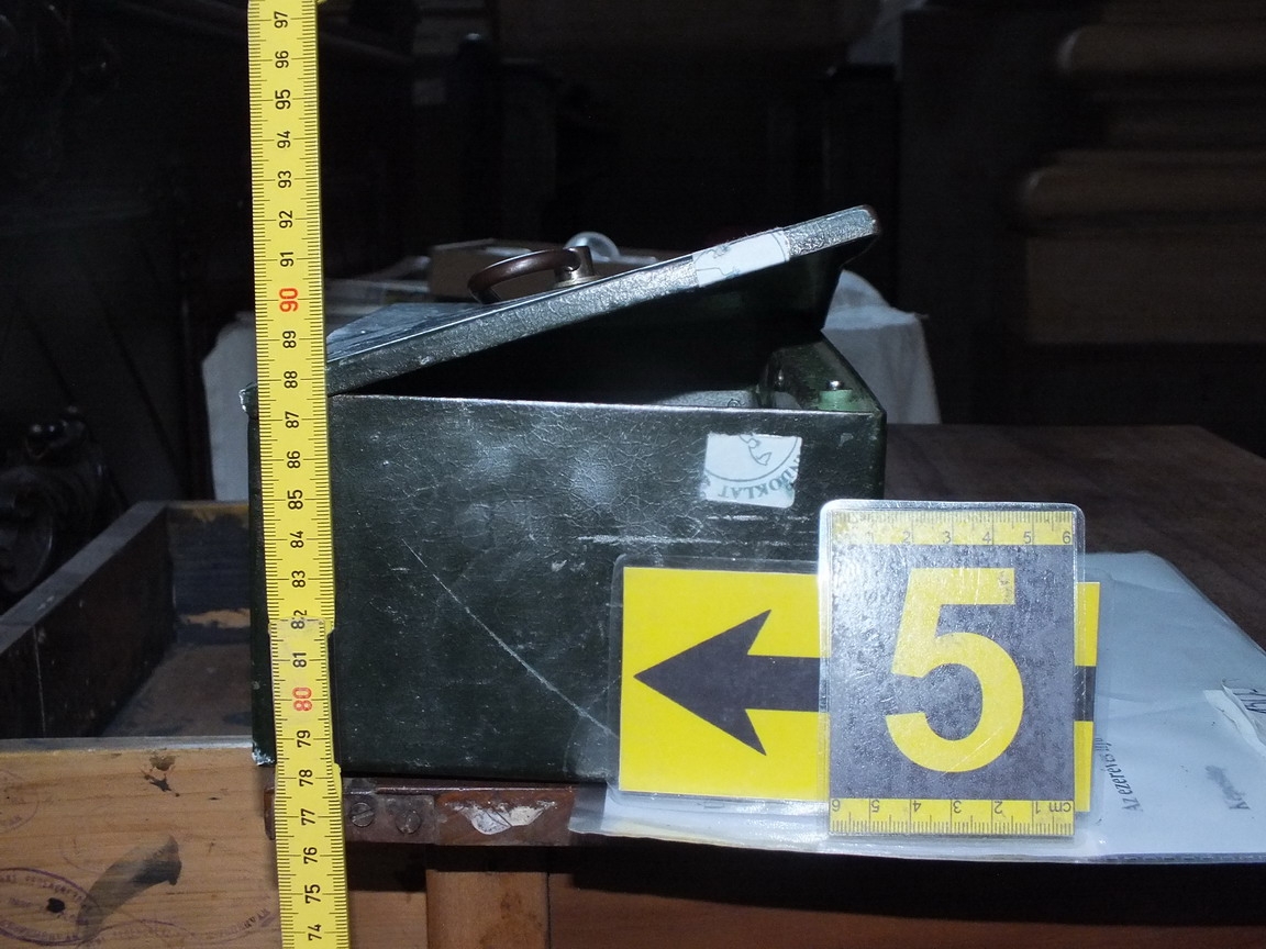 A rendőrségre 2015. március 6-án délután érkezett bejelentés arról, hogy egy székesfehérvári templomban két gyanúsan viselkedő személyre figyeltek fel. A helyszínre érkező járőrök az Arany János utcában igazoltattak egy 29 éves férfit és egy 30 éves nőt, akikre ráillett a bejelentő által adott személyleírás. Az igazoltatás során a rendőrök ruházatátvizsgálást tartottak, melynek során a férfi táskájában erővágót és üveg betöréséhez használatos eszközöket, valamint több száz forint aprópénzt találtak.