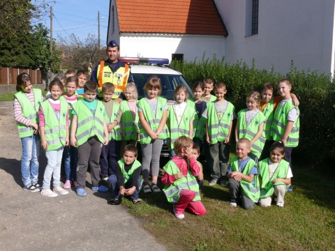 Az etei iskolások a baleset-megelőzési tanácsok mellett láthatósági mellényeket is kaptak a helyi körzeti megbízottól.