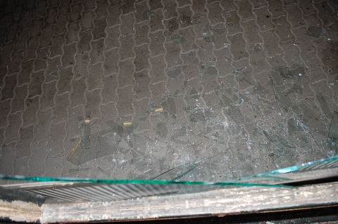 Az utazócsarnok egyik üvegtábláját törte ki.