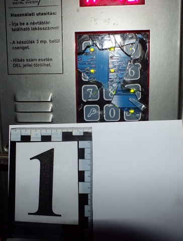 A 45 éves nő ezért annyira dühös lett, hogy többször beleütött a kaputelefonba, valamint a nála lévő kulccsal is megrongálta azt. Ezt az egyik ott lakó férfi észrevette és rászólt a nőre, majd telefonon értesítette az esetről a rendőrséget.