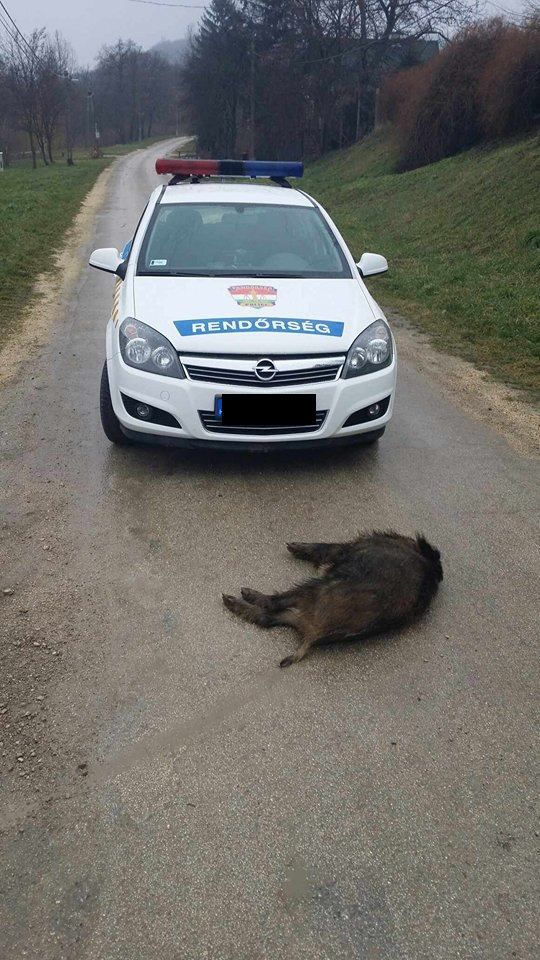 A járőrök megállapították, hogy Tényő külterületén egy engedéllyel tartott vadászat alkalmával megsebzett vaddisznó menekült be a faluba és riadalomba ejtette a település lakóit.