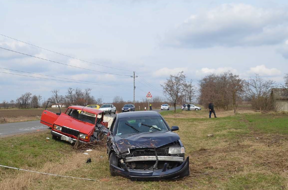 Két személyautó ütközött össze Nagyszénás és Orosháza között.