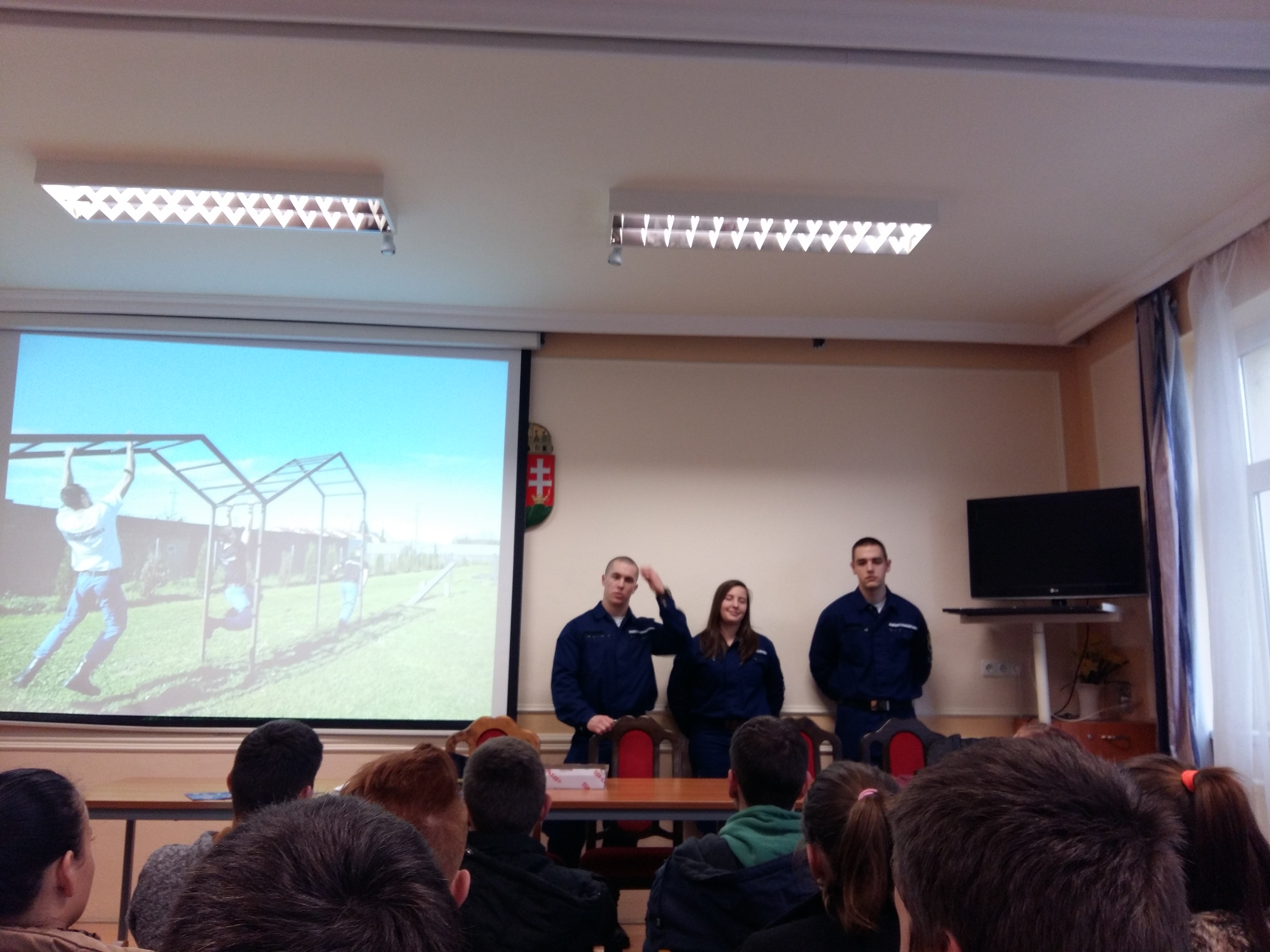 Ezt követően egy kötetlenebb beszélgetésre került sor, ahol az elmúlt évben érettségizett és jelenleg a Körmendi Rendészeti Szakközépiskolában tanuló három első éves hallgató kisfilmekkel, fotósorozattal és személyes élményekkel mutatta be a képzést, a szabadidős lehetőségeket.