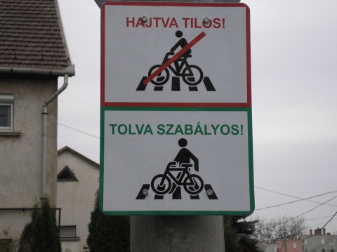 Szinte minden autós találkozott már azzal a közlekedési szituációval, amikor egy biciklis áttekert előtte a zebrán. Egyesek lustaságból, mások nemtörődömségből, néhányan pedig azért, mert nincsenek tisztában a helyes közlekedési szabályokkal, kerékpárjukat hajtva kelnek át a gyalogos-átkelőhelyen. Ez a magatartás azonban amellett, hogy szabálytalan, könnyen balesethez is vezethet, hiszen a gépjárművezetők gyalogosokra, nem pedig tempósan haladó kerékpárosokra számítanak a zebrákhoz közelítve. A balesetek megelőzése, valamint a helyes közlekedési magatartás tudatosítása érdekében a Pápai Rendőrkapitányság és a város útjait kezelő Városgondnokság hat olyan pápai zebrához helyezte ki a kétkerekűvel közlekedőknek szóló tájékoztató táblákat, amelyek kerékpárutak közelében találhatók, így ott gyakori a kerékpárosok áthaladása.
