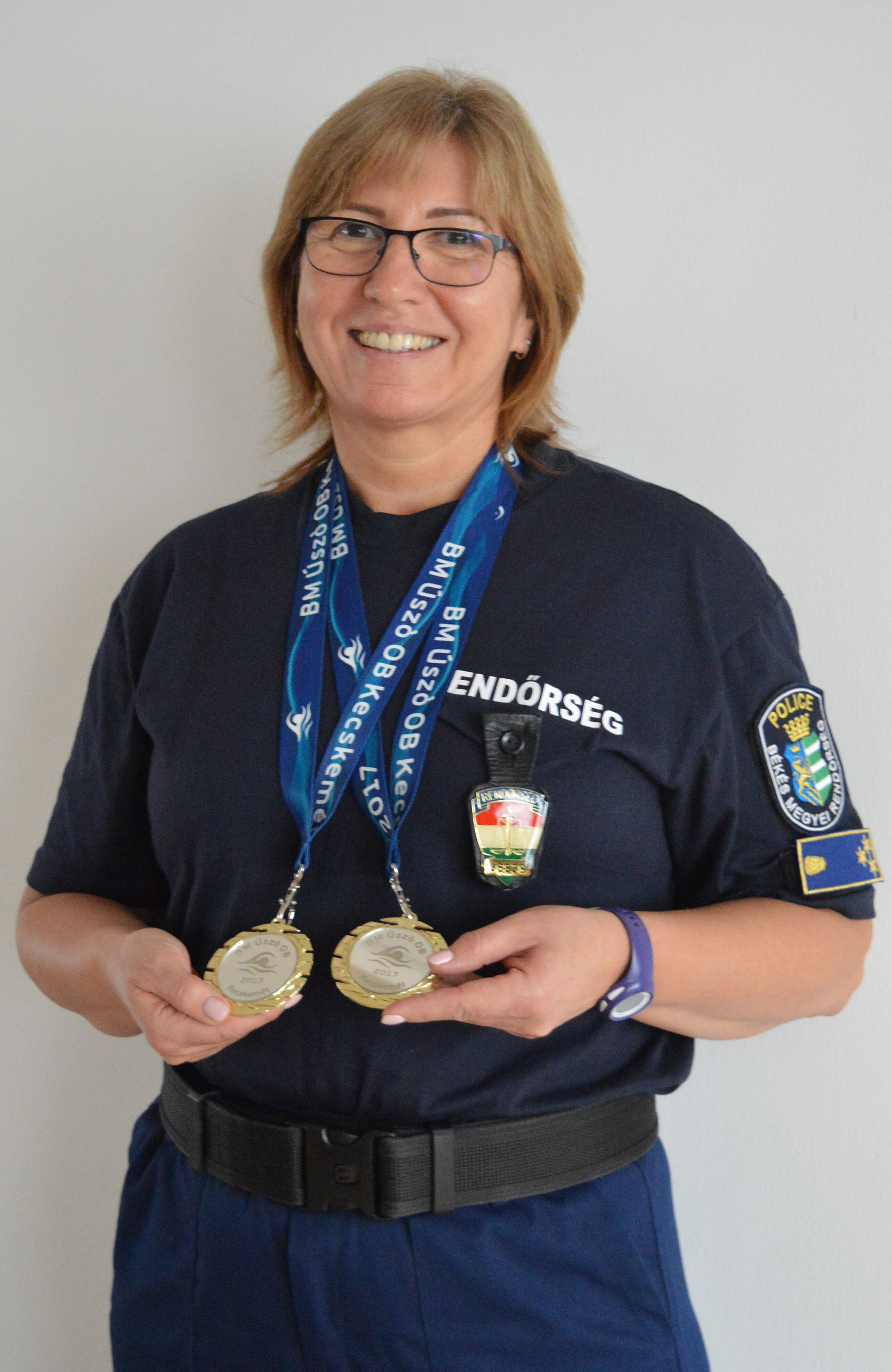 Két aranyérmet nyert Pengő Erzsébet r. százados, a Békés Megyei Rendőr-főkapitányság Bűnmegelőzési Osztályának kiemelt főelőadója a Belügyminisztérium Országos Úszó Bajnokságán.