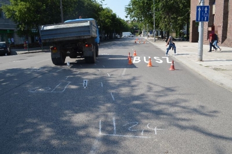 A két jármű összeütközött, melynek hatására a személygépkocsi az úttest menetiránya szerinti bal oldali járdára sodródott, és ott elütött egy nőt. A gyalogos súlyos sérüléseket szenvedett.