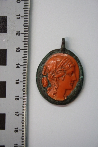 A Hansági Múzeum egyik alkalmazottja tett feljelentést 2015. október 30-án a rendőrségen, mivel a múzeumból eltűnt egy római korból származó, narancssárga, kőbe vésett, domború női fejrészt ábrázoló bronzmedál. A feljelentő elmondta, hogy az előző napon egy az eltűnt érméhez hasonló régészeti leletet mutatott kolléganőjének egy fiatalember, aki az elmúlt napokban a múzeum felújításán dolgozott. A férfi azt mondta az asszonynak, hogy ő maga is „régészkedik” egy fémkeresővel és körülbelül három héttel azelőtt - Lébény környékén - találta a bronzmedált. A múzeológus megvizsgálta az érmét és megállapította, hogy a férfi által behozott medál fejrésze megegyezik a múzeumból eltűnt régészeti leletről készített gipszmásolattal, illetve annak a leltárkönyvben szereplő tárgyleírásával, méreteivel és egyéb adataival.