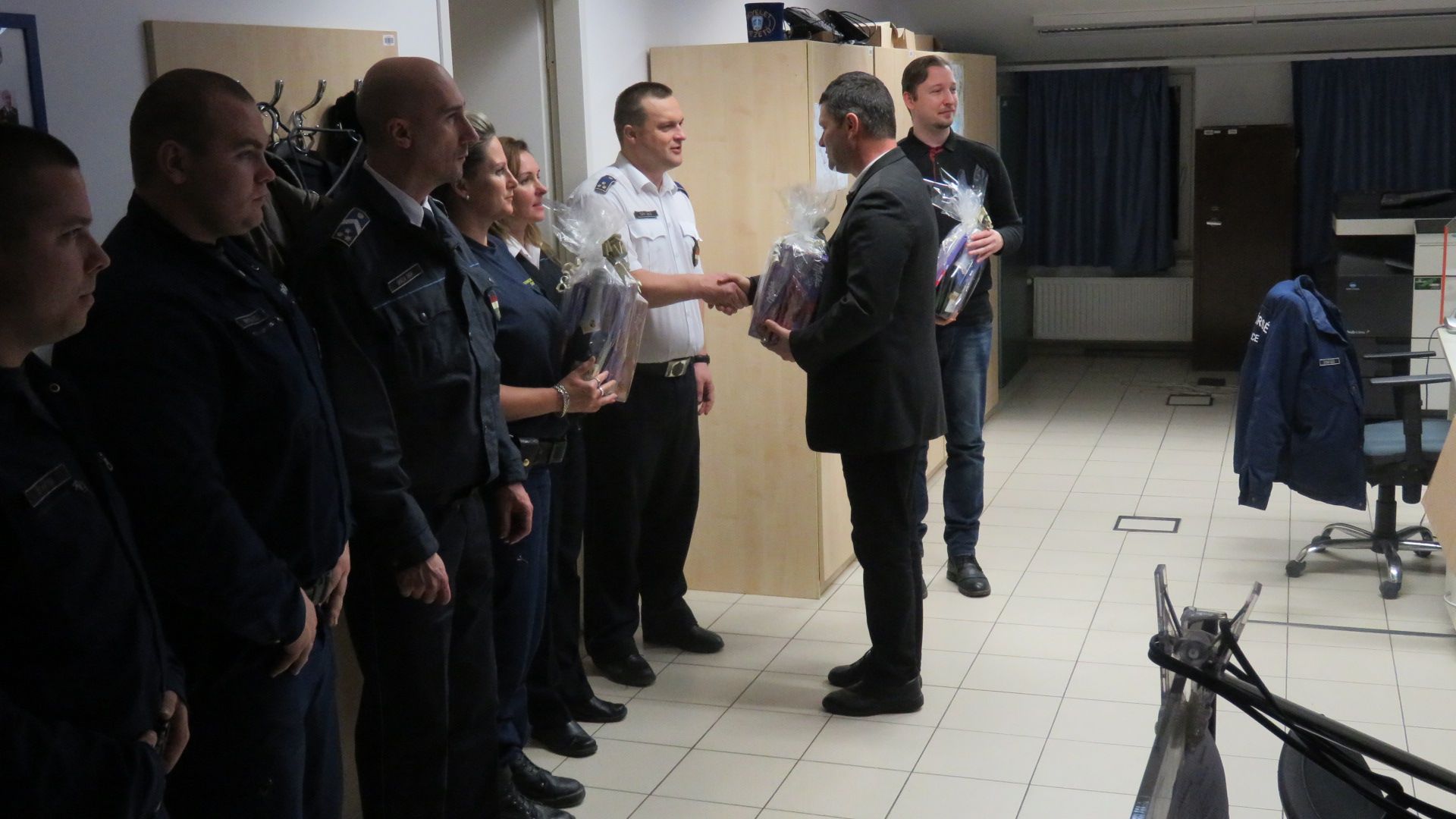 Szakál Ferencz r. alezredes, rendőrségi tanácsos a Zala Megyei Rendőr-főkapitányság Tevékenység-irányítási Központjának osztályvezetője, ajándékcsomaggal köszönte meg azoknak a rendőröknek a munkáját, akik 2016. december 24-én éjszaka láttak el szolgálatot, ezzel hozzájárulva, hogy az állampolgárok nyugodt körülmények között tölthessék az ünnepeket.