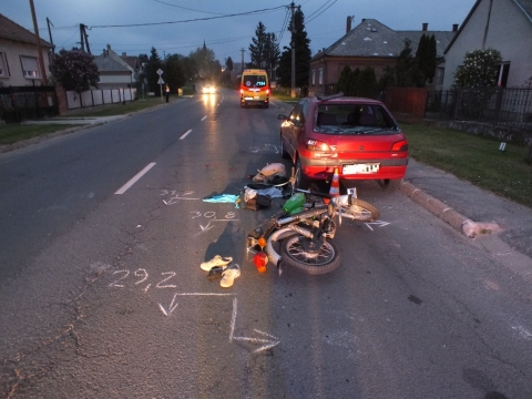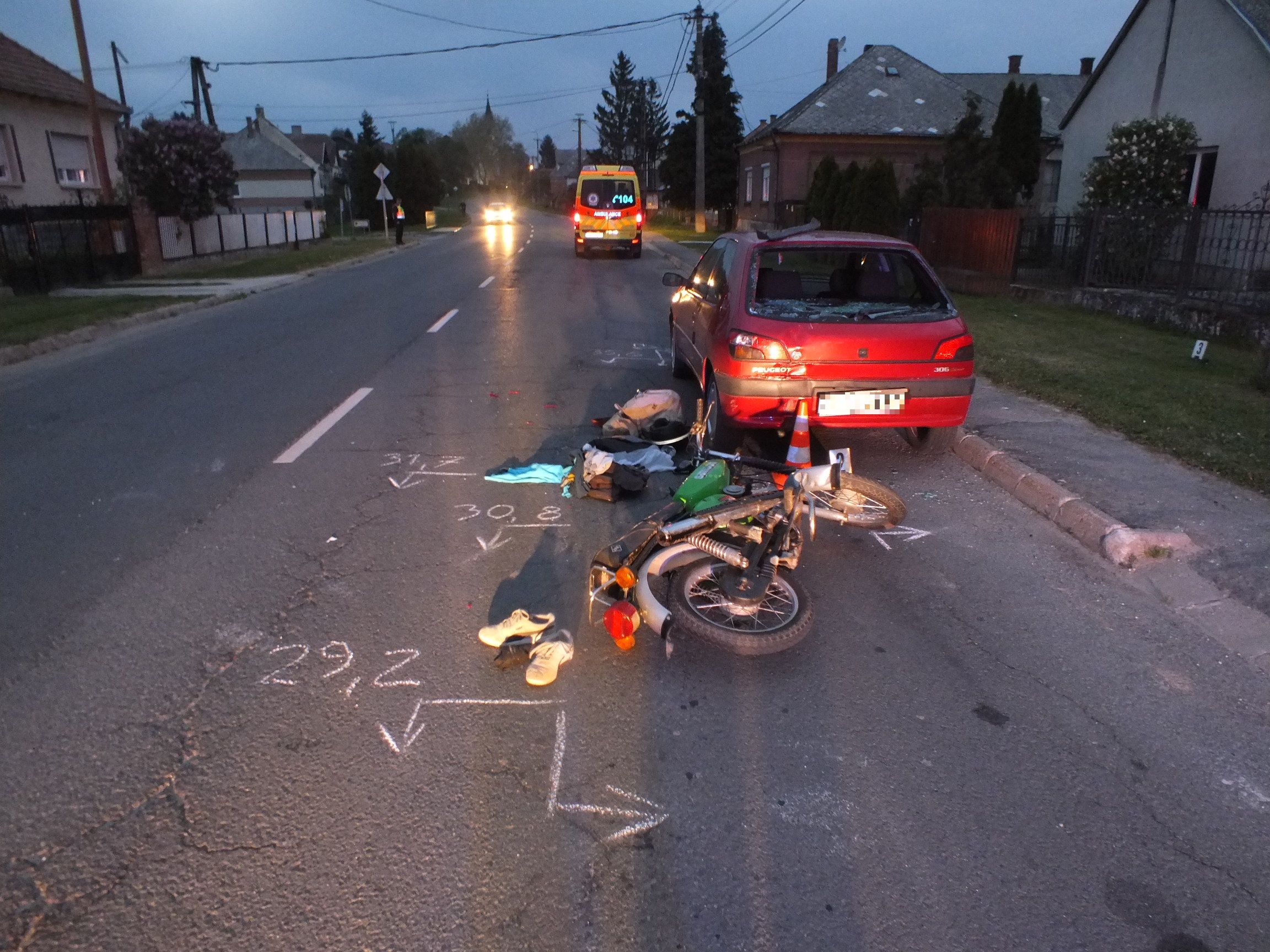 Egy 15 éves fiú 2017. április 22-én 19 óra 5 perckor Becsehelyen, a Kossuth Lajos utcában motorkerékpárral közlekedett, amikor figyelmetlensége miatt nekiütközött egy szabályosan parkoló Peugeot 306 típusú személyautónak. A baleset következtében a kamasz nyolc napon túl gyógyuló, súlyos sérüléseket szenvedett.