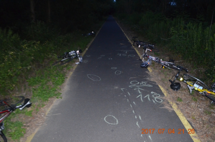 Zalacséb irányából Zalaszentgyörgy felé a kerékpárúton, 2017. július 4-én 19 óra 40 perckor a helytelenül megválasztott sebesség miatt, biciklijével elesett egy 16 éves fiú. A mögötte érkező két kerékpáros már nem tudta kikerülni őt, ezért nekiütköztek. A baleset következtében két személy könnyebben, egy pedig súlyosan megsérült, a kétkerekű járművek megrongálódtak.