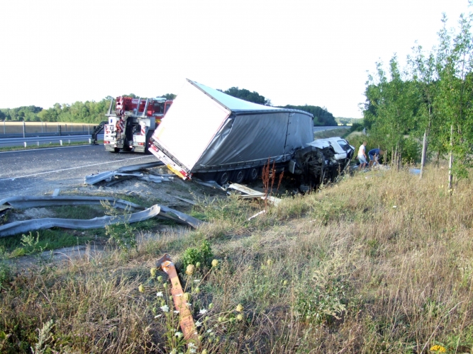 Egy 44 éves zalaegerszegi férfi 13 óra 20 perckor az M7-es autópálya 198. kilométerszelvényében, a Budapest felé vezető oldalon kamionjával a leállósáv melletti szalagkorlátnak ütközött, majd a jármű félig az oldalára borulva állt meg. A balesetben a teherautó vezetője nyolc napon túl gyógyuló, súlyos sérülést szenvedett.