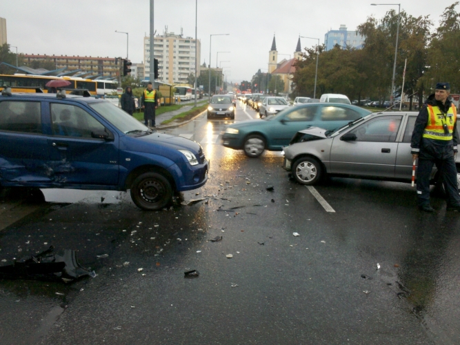 Egy 49 éves helyi nő 15 órakor Zalaegerszegen, a Balatoni úton közlekedett Csács irányába Suzuki Swift típusú személyautójával, amikor a Stadion utcához érve nekiütközött egy Suzuki Ignisnek, melyet nekilökött egy Ford Transitnak. A balesetben a Suzuki Swift vezetője nyolc napon belül gyógyuló könnyű sérülést szenvedett.