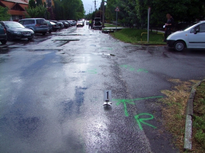 Egy 43 éves zalaegerszegi nő 2018. május 15-én 16 óra 5 perckor Keszthelyen, a Vaszary Kolos utcában közlekedett személyautójával a Bercsényi utca felé, amikor megkezdte a kanyarodást egy baloldalon lévő parkoló felé. Egy szemből érkező segédmotoros, hogy elkerülje az ütközést, a jobb oldali útpadkára hajtott, ahol elesett, a két jármű nem ütközött össze. A balesetben a motoros nyolc napon belül gyógyuló, könnyű sérülést szenvedett.