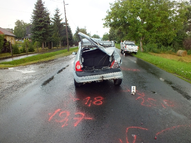 Egy 55 éves nő 13 óra 46 perckor Zalaegerszegen, a Teskándi úton közlekedett személyautójával Teskánd irányába, amikor egy előtte fékező és balra kanyarodó Renault Clio-nak ütközött. A balesetben a Renault-ot vezető 23 éves nő nyolc napon belül gyógyuló, könnyű sérülést szenvedett.