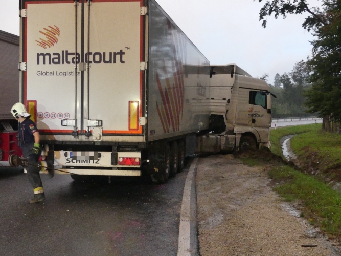 Egy 40 éves férfi 16 óra 55 perckor a 76-os számú főúton közlekedett egy kamionnal Zalaegerszeg irányából Nagykapornak felé, amikor az 50+850-es kilométerszelvénynél megcsúszott a járművel és a vízelvezető árokba csapódott. A baleset során a sofőr könnyebben sérült.