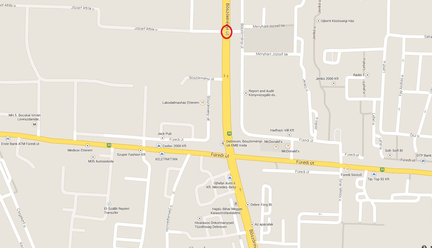 A rendelkezésre álló adatok szerint 2015. január 13-án 20 óra 25 perc körüli időben Debrecenben, a Böszörményi úton és József Attila utca kereszteződésénél eddig tisztázatlan okból négy személygépkocsi összeütközött.