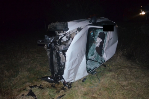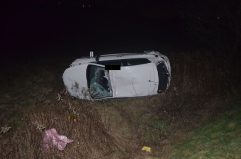 Egy fiatalember sérült meg az oldalára borult autójában.