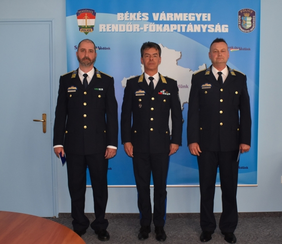 Ketten, Tóth József r. alezredes és Farkas Krisztián r. alezredes pedig Vörös Ferenc r. dandártábornoktól vették át a kinevezésről, illetve elismerésről szóló határozatot, amit országos rendőrfőkapitány úr nevében adott át Békés vármegye rendőrfőkapitánya.