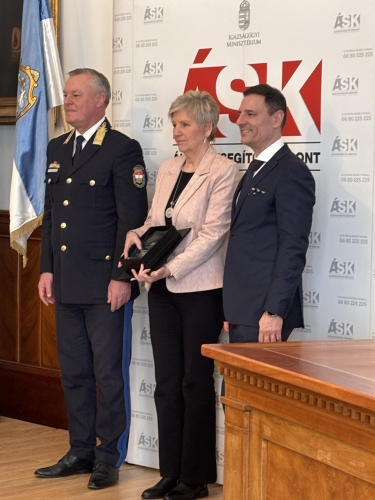 A világnap alkalmából dr. Tuzson Bence, igazságügyi miniszter és dr. Töreki Sándor r. vezérőrnagy, bűnügyi országos rendőrfőkapitány-helyettese adta át a rangos elismerést Vargáné Sziládi Angéla Beátának.