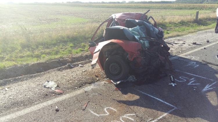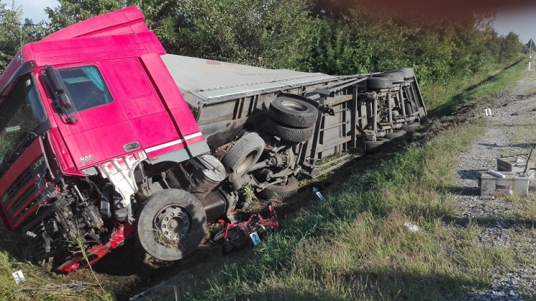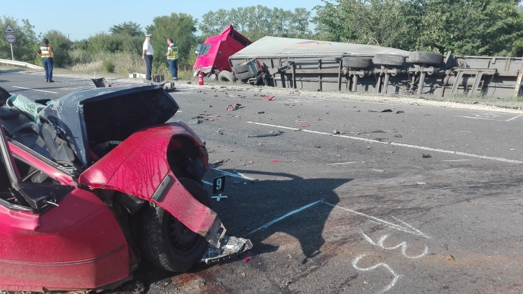 Egy személygépkocsi és egy kamion frontálisan összeütközött. Az autó sofőrje a helyszínen életét vesztette.