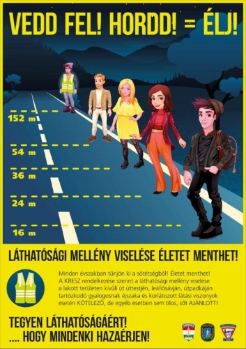 A járművezetők részére 2019. október 22-től december 15-ig tart a „Látni és látszani 2019 - egymásért” elnevezésű országos közlekedésbiztonsági kampány, de ebben az időszakban nem szabad elfeledkezni a gyalogosokról sem. Részükre a Nógrád Megyei Rendőr-főkapitányság Balesetmegelőzési Bizottsága a láthatósági mellény viselésének életmentő szerepét bemutató szóróanyaggal készült.