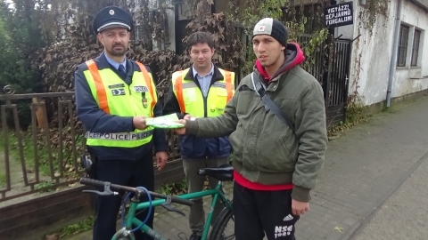 A nádudvari körzeti megbízott egy helyi polgárőrrel közösen a láthatóságot segítő eszközöket osztott a városban kerékpárral közlekedőknek.