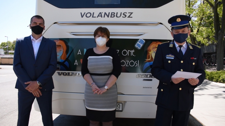 A képen balról jobbra látható: Fejes Miklós, a Volánbusz Zrt. forgalmi régióigazgatója; Dzurek Gabriella, a Volánbusz Zrt. Békés megyei forgalmi üzemvezetője; Hudák Pál r. ezredes, a Békés Megyei Rendőr-főkapitányság rendészeti rendőrfőkapitány-helyettese