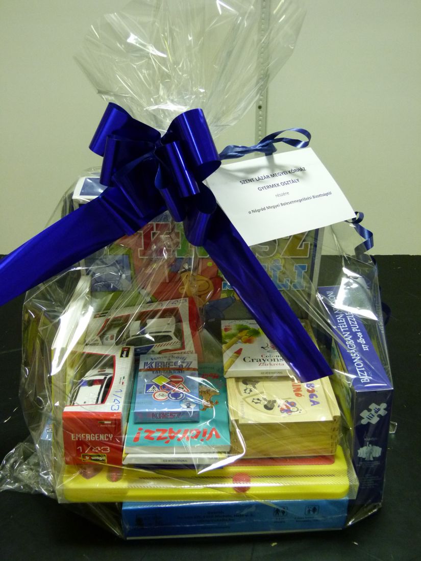 Tamás Kovács Andrea rendőr őrnagy, a Nógrád Megyei Rendőr-főkapitányság Baleset-megelőzési Bizottság előadója a bizottság nevében - segítve a Gyermekosztályon tartózkodó kis betegek felépülését, gyógyulását - egy ajándékcsomagot adott át a Szent Lázár Megyei Kórház Csecsemő - és Gyermekgyógyászati Osztály főorvosa, Dr. Szabó Attila részére.