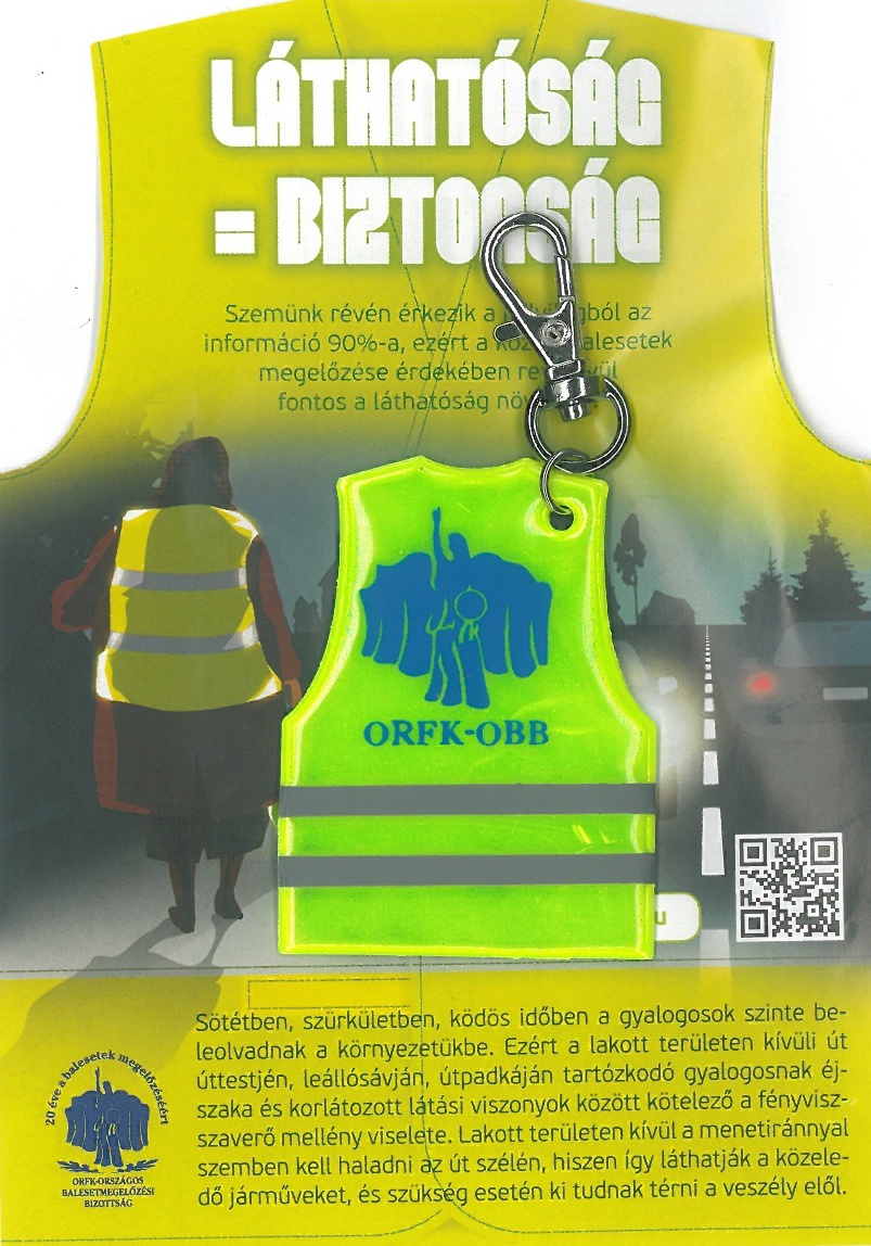 A Békés Megyei Baleset-megelőzési Bizottság az év 51. hetére két figyelemfelhívó akciót szervez. Az egyik alkalommal, 2013. december 16-án a kerékpárosoknak és gyalogosnak adnak hasznos tanácsokat. Békéscsabán, a Szent István téren 15 és 16 óra között várják az arra járókat a „LÁTHATÓSÁG = BIZTONSÁG” című szórólappal, melyhez egy fényvisszaverő mellény formájú kulcstartó is tartozik.