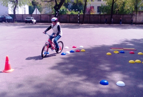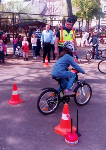 A gyerekek akadálypályán gyakorolhatták a kerékpáros közlekedést egy debreceni iskolában.