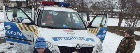 A rendőr az előadást követően szolgálati gépkocsját és az abban található felszereléseket is megmutatta a gyerekeknek, majd a találkozó végén fényvisszaverő matricát és karszalagot adott ajándékba a közlekedés legalapvetőbb szabályait megismerő óvodásoknak.