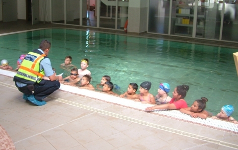 A Balmazújvárosi Rednőrkapitányság munkatársa 2016. május 31-én az „Iskola rendőre” program keretén belül egy balmazújvárosi általános iskola diákjainak balesetmegelőzési előadást tartott egy helyi gyógyfürdőben, ahol a tanulók úszásoktatáson vettek részt. Csige Imre r. főtörzsőrmester az előadáson tájékoztatta a gyerekeket a veszélyt jelző táblákról, a mélyvíz és a kánikula veszélyeiről, illetve a szabad vizeken kijelölt fürdőhelyeken történő úszás veszélyeiről. A program végén az előadó az Országos Balesetmegelőzési Bizottság által biztosított ajándékot adott a kicsiknek.