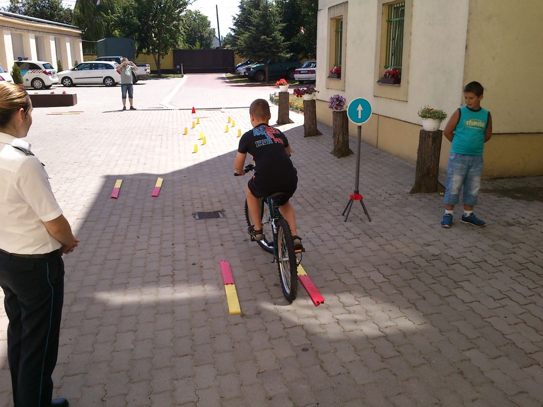 Szóbeli kérdezz-felelek és írásban kitöltendő totók, majd közlekedési szituációkat ábrázoló színező feladatok segítségével sajátíthatták el az iskolások a biztonságos közlekedés szabályait, majd a megszerzett ismereteik birtokában végighajthattak a rendőrkapitányság udvarán felállított kerékpáros ügyességi pályán.