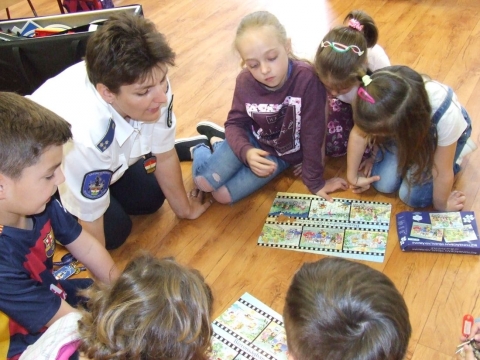 A Bátonyterenyei Rendőrkapitányság balesetmegelőzési szakembere az országos versenyre jelentkező gyermekeket szituációs játékokkal - KRESZ kirakó, közlekedési puzzle és kártyajáték segítségével - tanította meg a gyalogos és kerékpáros közlekedési szabályokra. Gergely Annamária rendőr százados a napokban a balesetek elkerülésének lehetőségeiről beszélt a kicsiknek, majd az előadás végén fényvisszaverő karkötőt, karpántot, matricát és mellényt osztott szét.