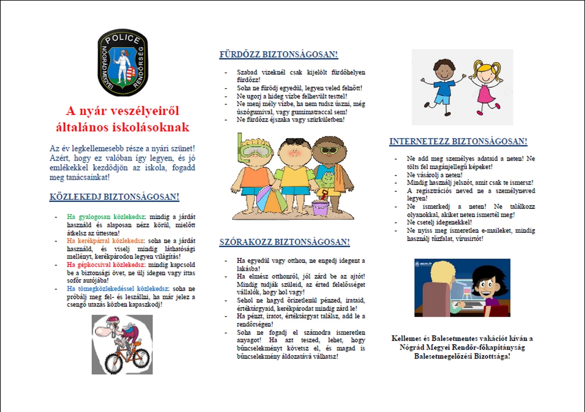 Élményekben gazdag, biztonságos és balesetmentes vakációt kíván minden gyermeknek a Nógrád Megyei Rendőr-főkapitányság!
