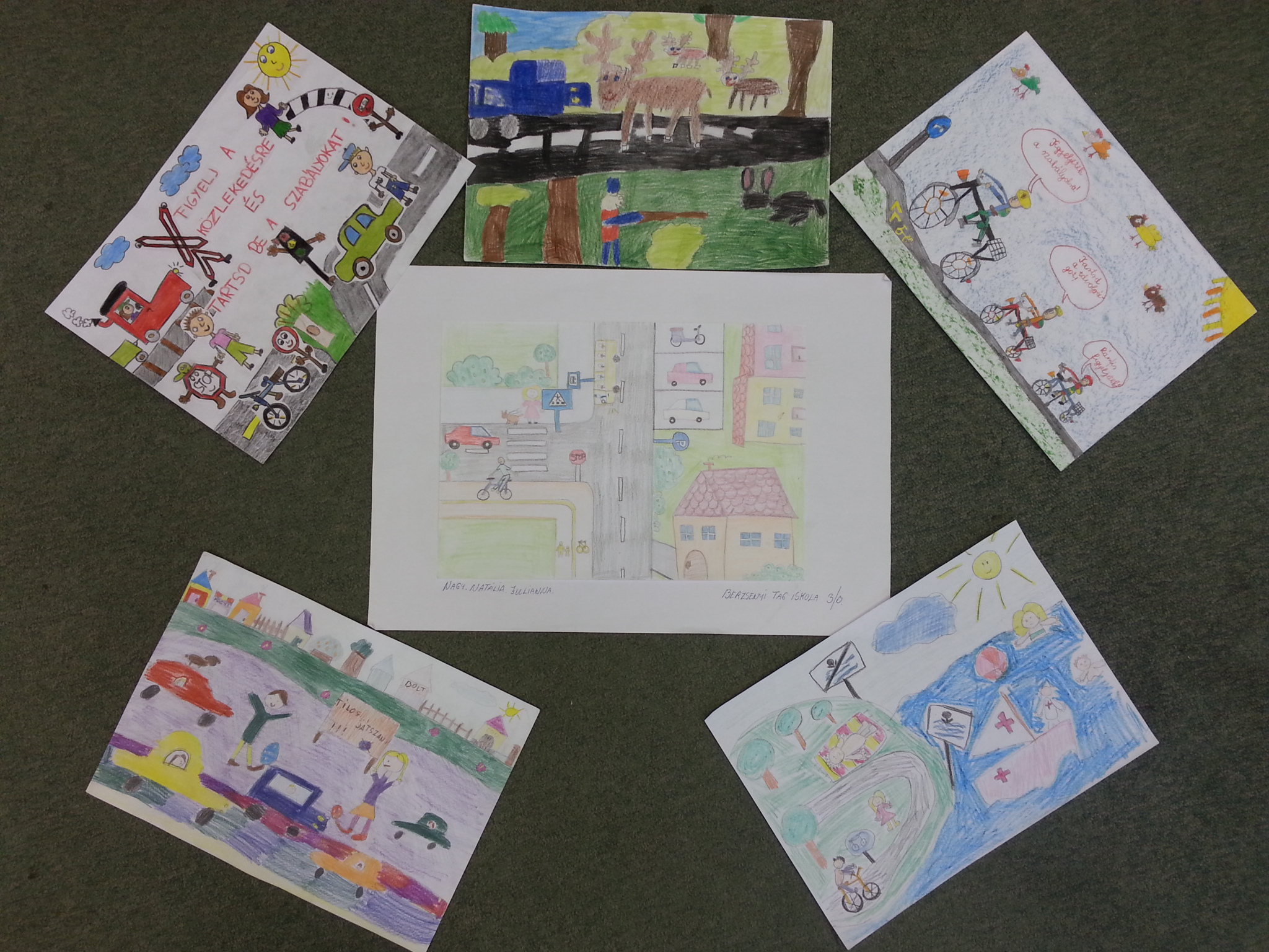 Az óvodákhoz, valamint általános iskolákhoz eljuttatott pályázati kiírás alapján megyénk 18 intézményéből érkeztek közlekedésbiztonsági témájú rajzok, amik a közlekedésről, valamint a rendőrök és a gyermekek kapcsolatáról készültek.