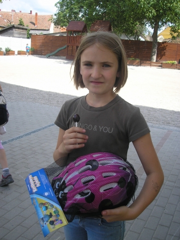 Az ajándékok között voltak azok a gyermekméretű kerékpáros bukósisakok is, amelyeket a Veszprém Megyei Baleset-megelőzési Bizottság bocsátott az iskola rendelkezésére azzal a céllal, hogy minél több tanulót ösztönözzön a védőeszköz viselésére.