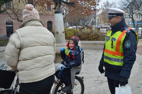 Békéscsaba belvárosában és a városhoz közeli tanyákon igyekezett felhívni a kerékpárosok és gyalogosok figyelmét a láthatóság fontosságára a rendőrség. A balesetek megelőzése érdekében megfogalmazott tanácsok mellé ajándék is járt.