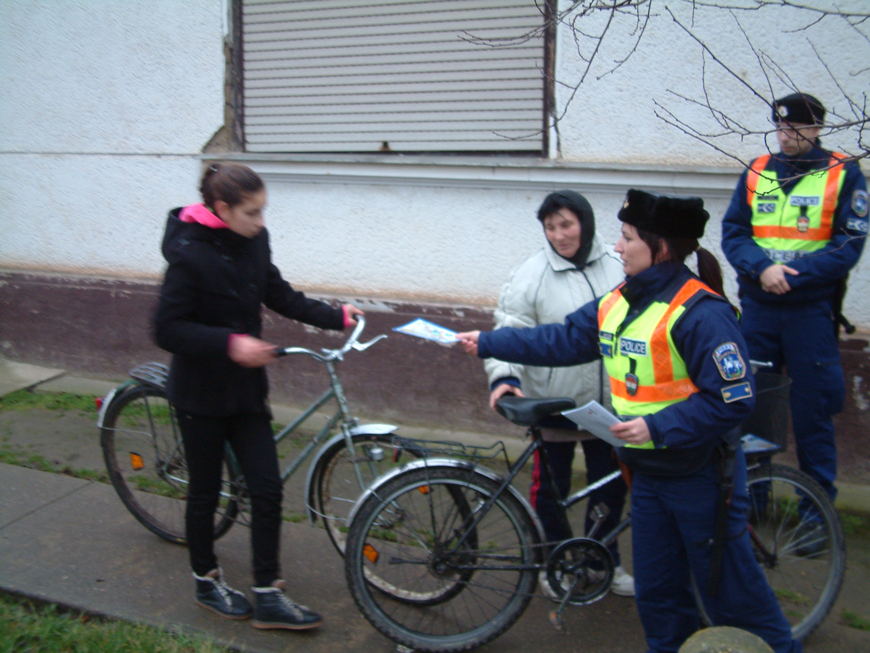 Az őszi és a téli időszakban, amikor már a késő délutáni órákban sötétedik és a köd miatt is gyakran jelentősen lecsökken a látótávolság, a balesetek megelőzése érdekében még nagyobb gondot kell fordítani a láthatóságra, mint az év más időszakaiban. A prizmák és a jól működő világító berendezések a láthatósági mellényhez hasonlóan a biztonságos közlekedés alapfeltételei. A kerékpárosok szívesen fogadták a rendőröket, a láthatósági eszközöket és a biztonságot szolgáló tájékoztatókat, valamint az egyenruhások ünnepi jókívánságait.