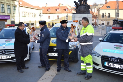 A több éves hagyománynak megfelelően a Magyar Autóklub Észak-magyarországi Szervezetének igazgatója, Csobod László és munkatársa, Fodor Kálmán a jó együttműködés jegyében 2016. december 29-én köszöntötte a Heves Megyei Rendőr-főkapitányság két közlekedési munkatársát.