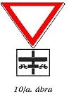 Amennyiben járművükkel olyan kereszteződéshez érnek, ami előtt a fenti táblakombináció van elhelyezve, az úttest kerékpár-közlekedés céljára burkolati jellel kijelölt részén - a már említett szaggatott sárga vonal mentén - áthaladó kerékpáros részére elsőbbséget kell adni.